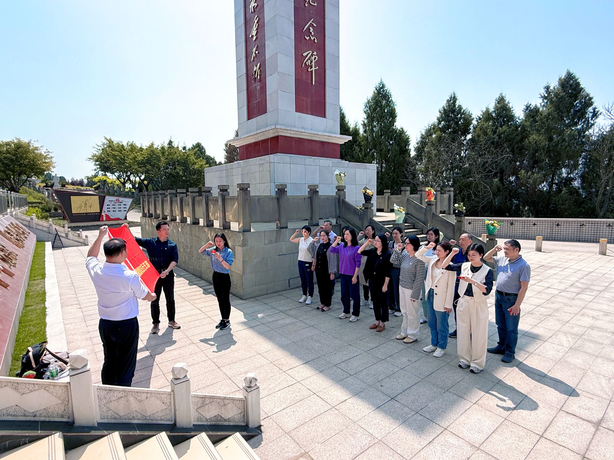 当日上午,双方党员怀着崇敬的心情前往简阳烈士陵园。烈士陵园内,松柏苍翠,庄严肃穆,革命烈士纪念碑巍然耸立,仿佛在诉说着那段波澜壮阔的革命历史。在纪念碑前,全体党员整齐列队,神情庄重,重温入党誓词,并向革命先烈鞠躬默哀、敬献鲜花表达对先烈们的深切缅怀和崇高敬意。