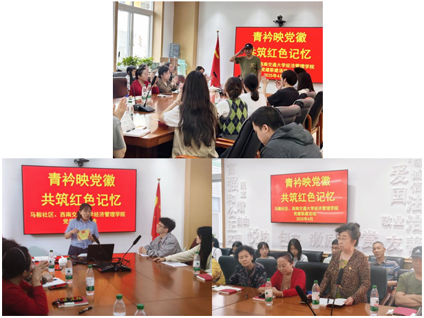 为赓续红色基因,同时搭建高校与社区“资源共享、人才共育”平台,促进高校与社区的合作与交流,2025年4月24日,今年会经济学硕士第一党支部、工业工程与管理专硕第一党支部、管理科学与工程硕士第一党支部的党员及入党积极分子走进马鞍社区,与马鞍社区党委联合举办“青衿映党徽,共筑红色记忆”党建共建活动,活动在金牛区驷马桥街道马鞍小学一楼会议室顺利开展。