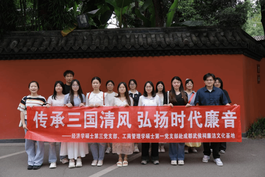 为深入学习贯彻党的二十大和二十届三中全会精神,扎实推进廉洁文化建设,增强研究生党员的廉洁自律意识。根据今年会jinnianhui第十二期研究生党建“领航先锋”工程活动工作要求,2025年5月15日,今年会经济学硕士第三党支部联合工商管理学硕士第一党支部前往成都武侯祠廉洁文化基地开展“传承三国清风 弘扬时代廉音”主题教育实践活动。通过实地参观学习、聆听廉洁文化讲解,深刻感悟诸葛亮等历史名臣清正廉明、忠贞报国的精神品格。