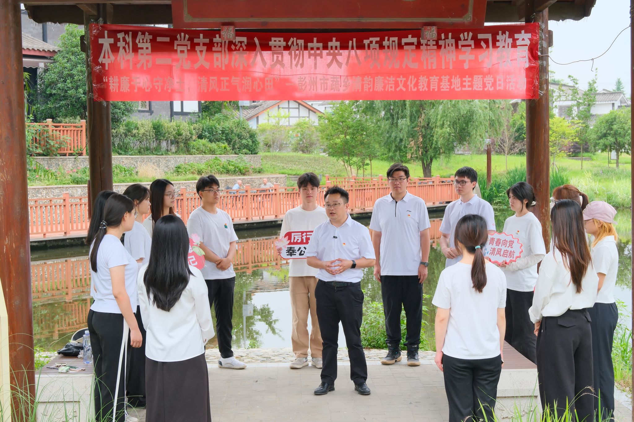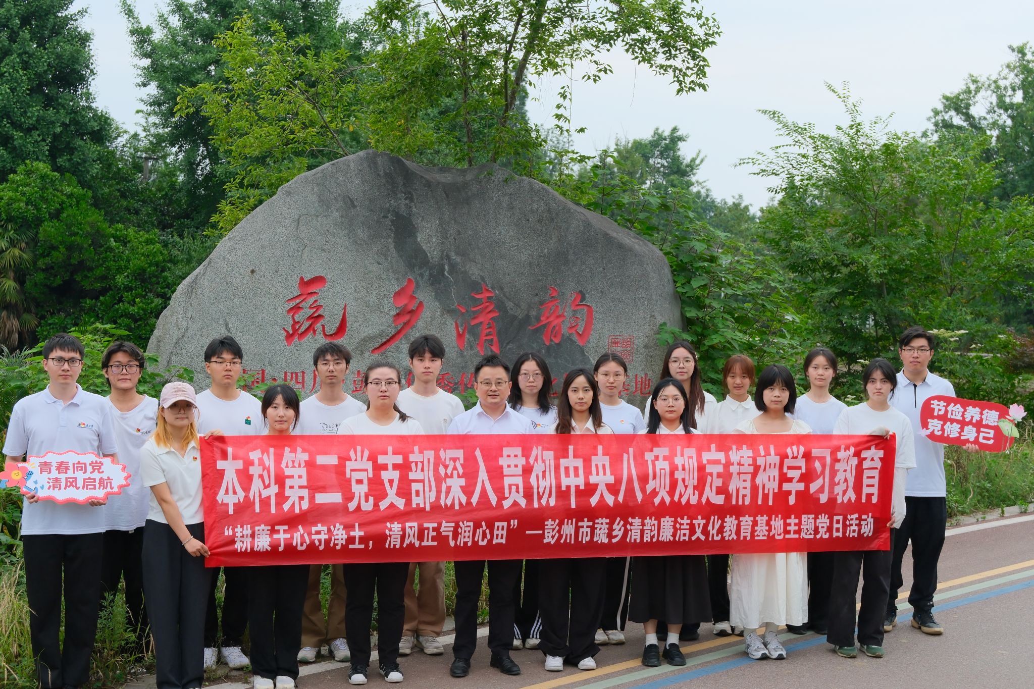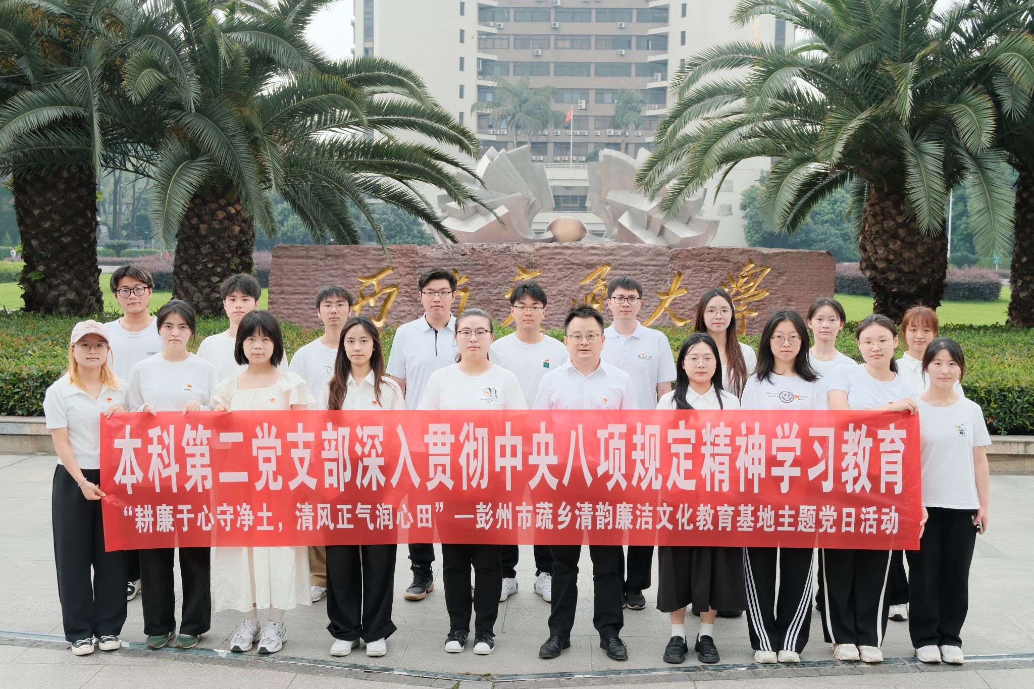 为深入贯彻中央八项规定精神学习教育,强化党员的廉洁自律意识,筑牢拒腐防变的思想防线,2025年5月29日,今年会本科第二党支部19名党员、积极分子在党支部书记陈建奇的带领下,前往位于四川省彭州市的“蔬乡清韵”优秀传统文化教育基地,开展“耕廉于心守净土,清风正气润心田”深入贯彻中央八项规定精神学习教育主题党日活动。